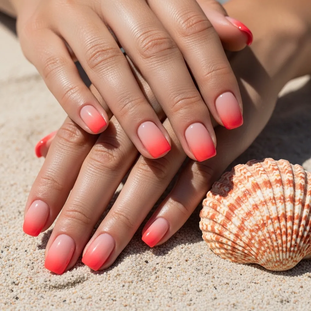 Blend the season’s hottest coral shades from a peachy tone to a vibrant, almost-red coral. This gradient captures the warmth of the approaching summer sun.