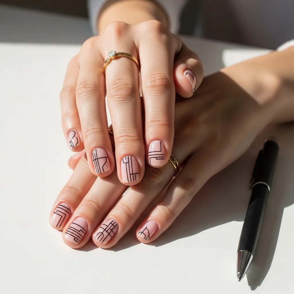 Sometimes less is more. On a bare or lightly tinted nail, use a fine liner brush to draw a single, sweeping curved line or a small geometric shape near the cuticle.