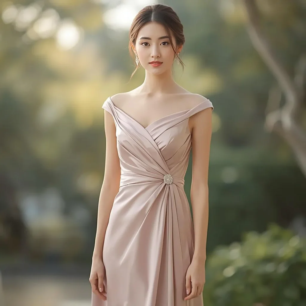 An off-shoulder dress adds elegance without being too bold. It feels feminine and special.