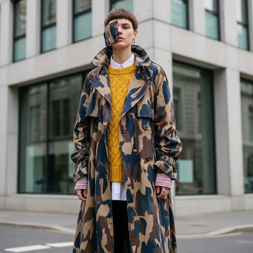 A classic trench coat, a colorful wool coat, a patterned duster, or a utility-style jacket. Choose one that reflects your mood and complements the layers underneath. It should tie the whole story together.