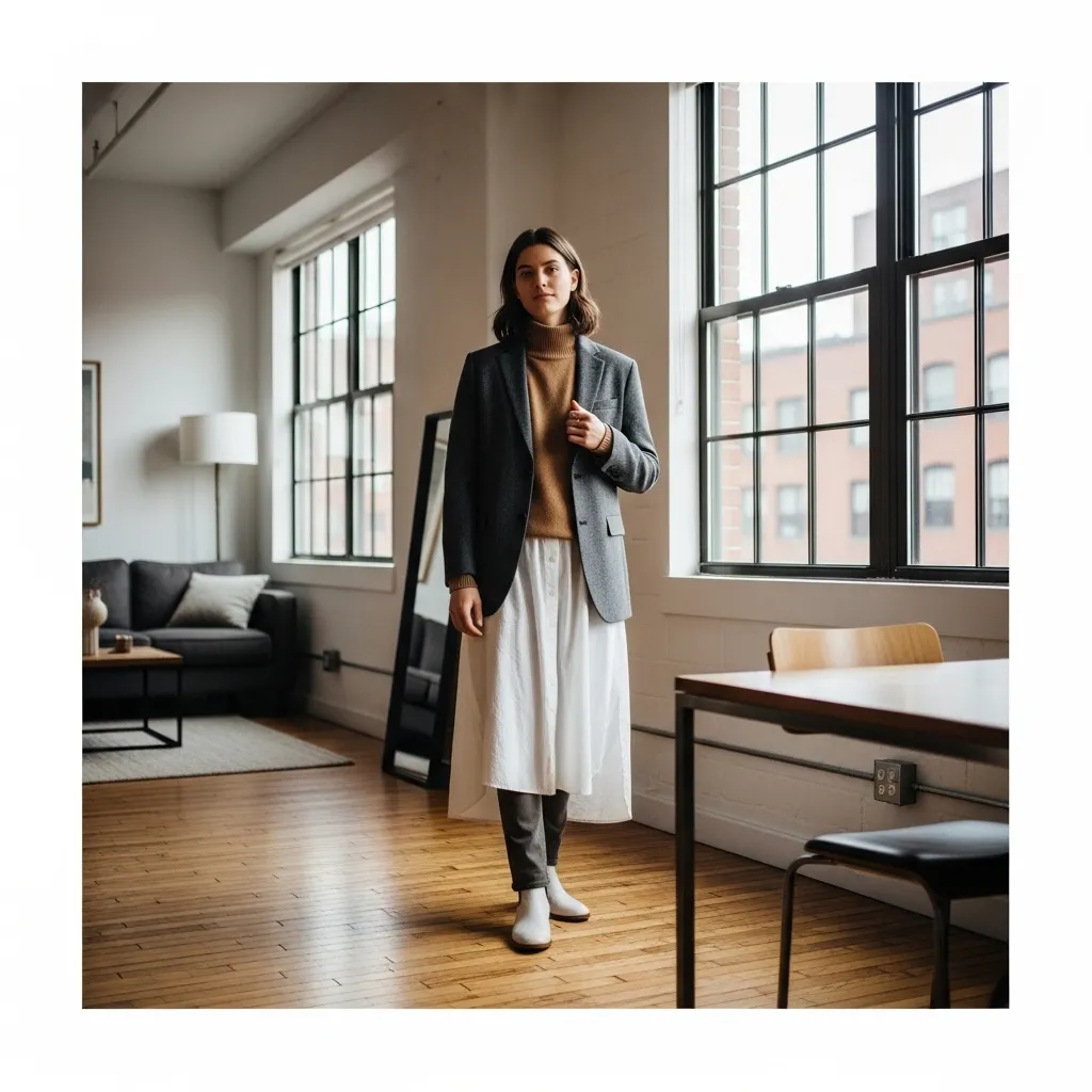 Try a long, flowing cardigan over a shorter fitted dress. Or a cropped puff jacket with high-waisted, wide-leg trousers. Let one layer peek out from under another—a longer shirt under a shorter sweater always looks intentional and chic.
